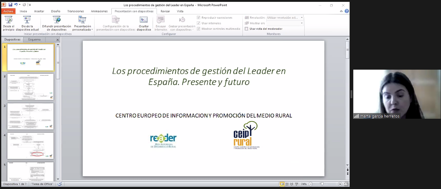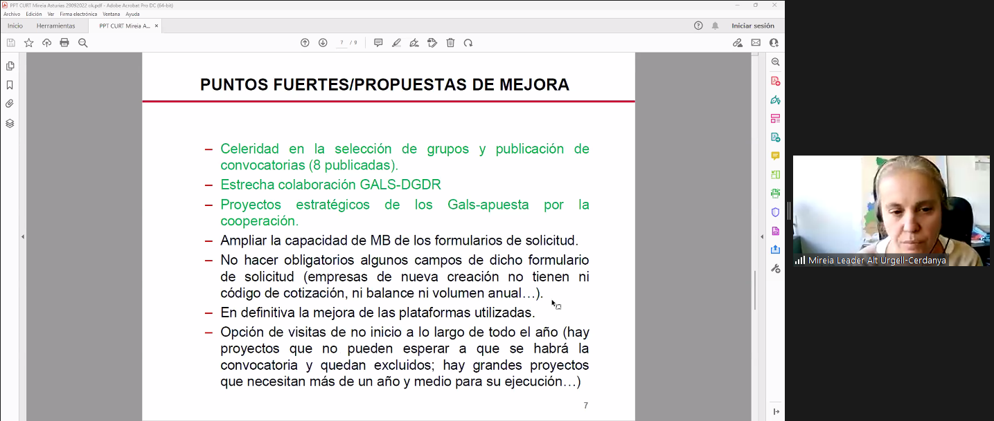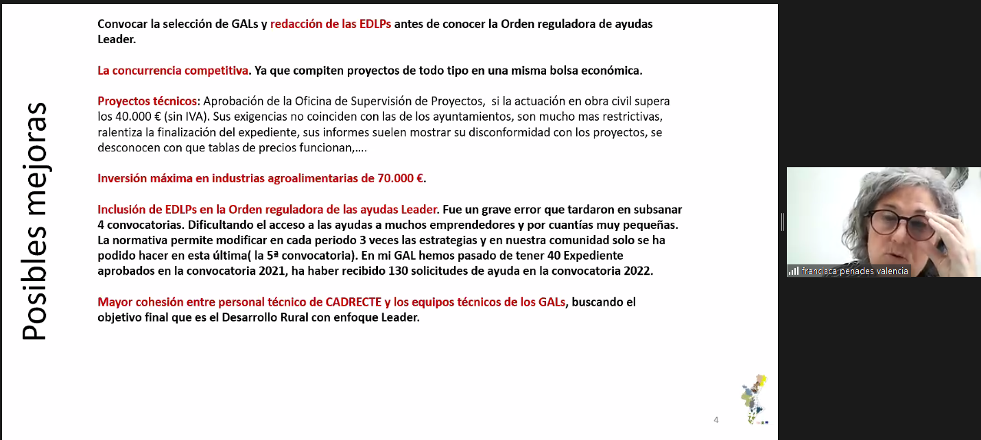La última intervención por parte de las redes regionales vino de parte del CEIP Rural, a cargo de Marta García Herreros, ha mencionado como el primero de los problemas la gestión informática del procedimiento, donde a los promotores les cuesta mucho la digitalización y la documentación requerida.