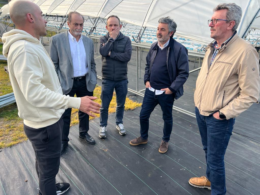 En las propias instalaciones de Monte tuvo lugar el encuentro del consejero con miembros de la Asamblea del Grupo de Desarrollo Rural Montaña Central de Asturias, para posteriormente trasladarse hasta la plantación de fresas de La Vegas de Cardeo, en Morcín.