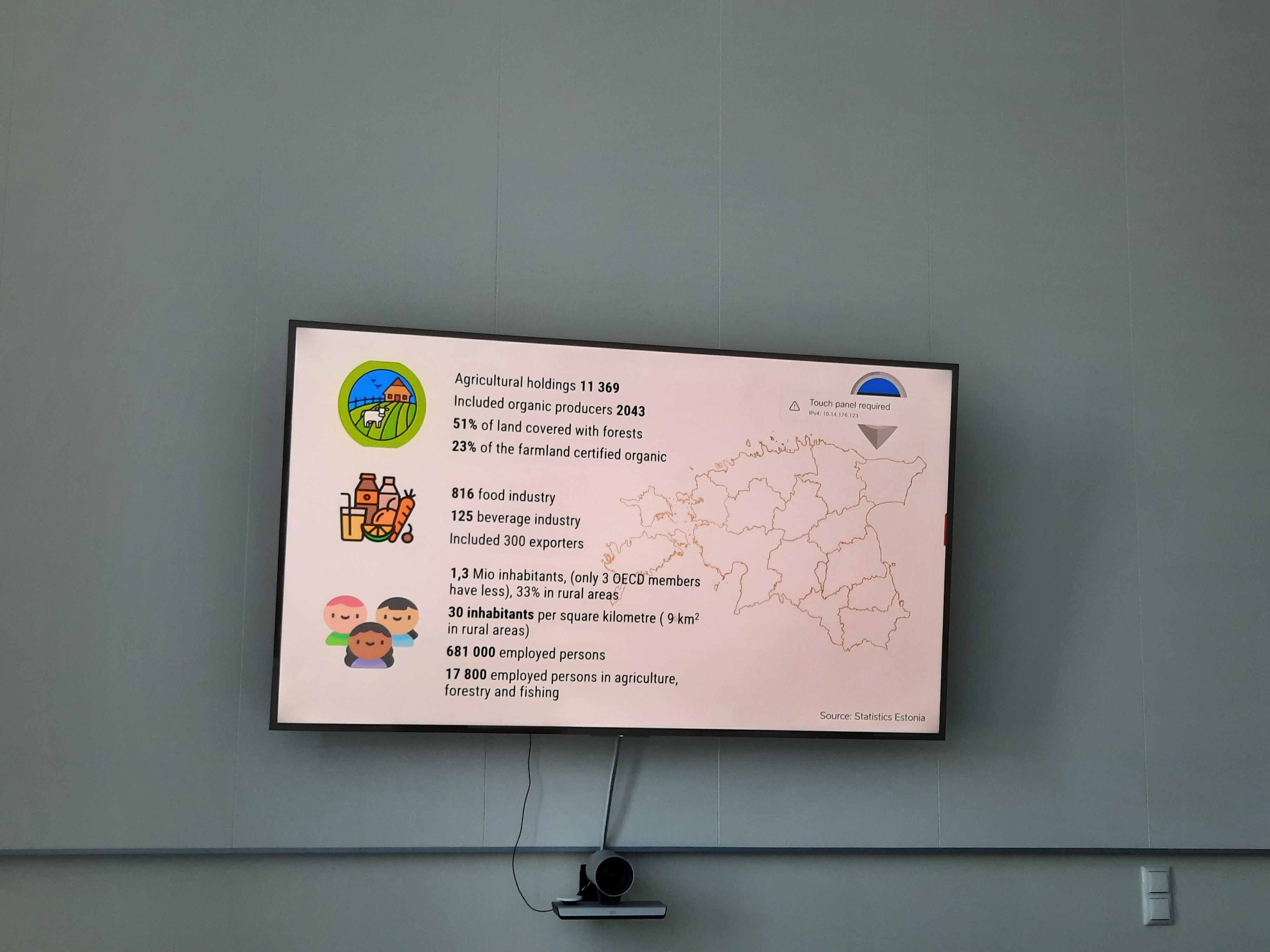 Por su parte, Katri Kuusk habló de la estrategia alimentaria del condado de Tartu en calidad de coordinadora. En total todo esta área abarca una superficie de 3.349 kilómetros cuadrados, con una población de más de 161.000 personas y ocho unidades de gobierno local. Un tercio de esta superficie es agraria, reuniendo buenas condiciones para la agricultura (durante el viaje se vieron inmensas fincas dedicadas al cultivo de la colza, que o bien transforman en aceite o utilizan como forraje). Además está la siembra de granos y la producción de lácteos. Según las estadísticas de 2019, existen 885 compañías con una facturación de 420 millones de euros, dando empleo a 4.600 personas. Un total de 471 empresas tienen un solo empleado y una facturación de 10.000 euros.