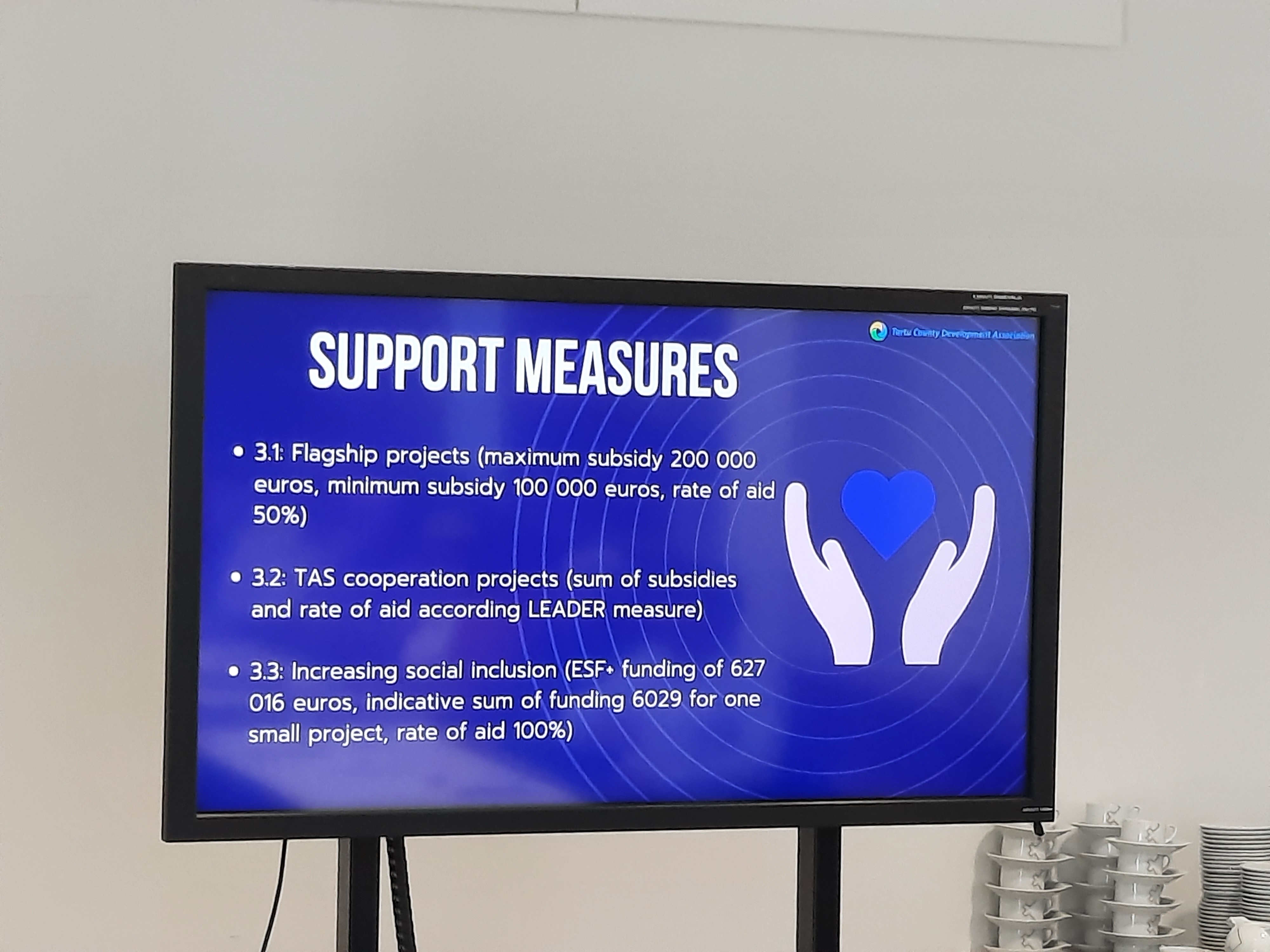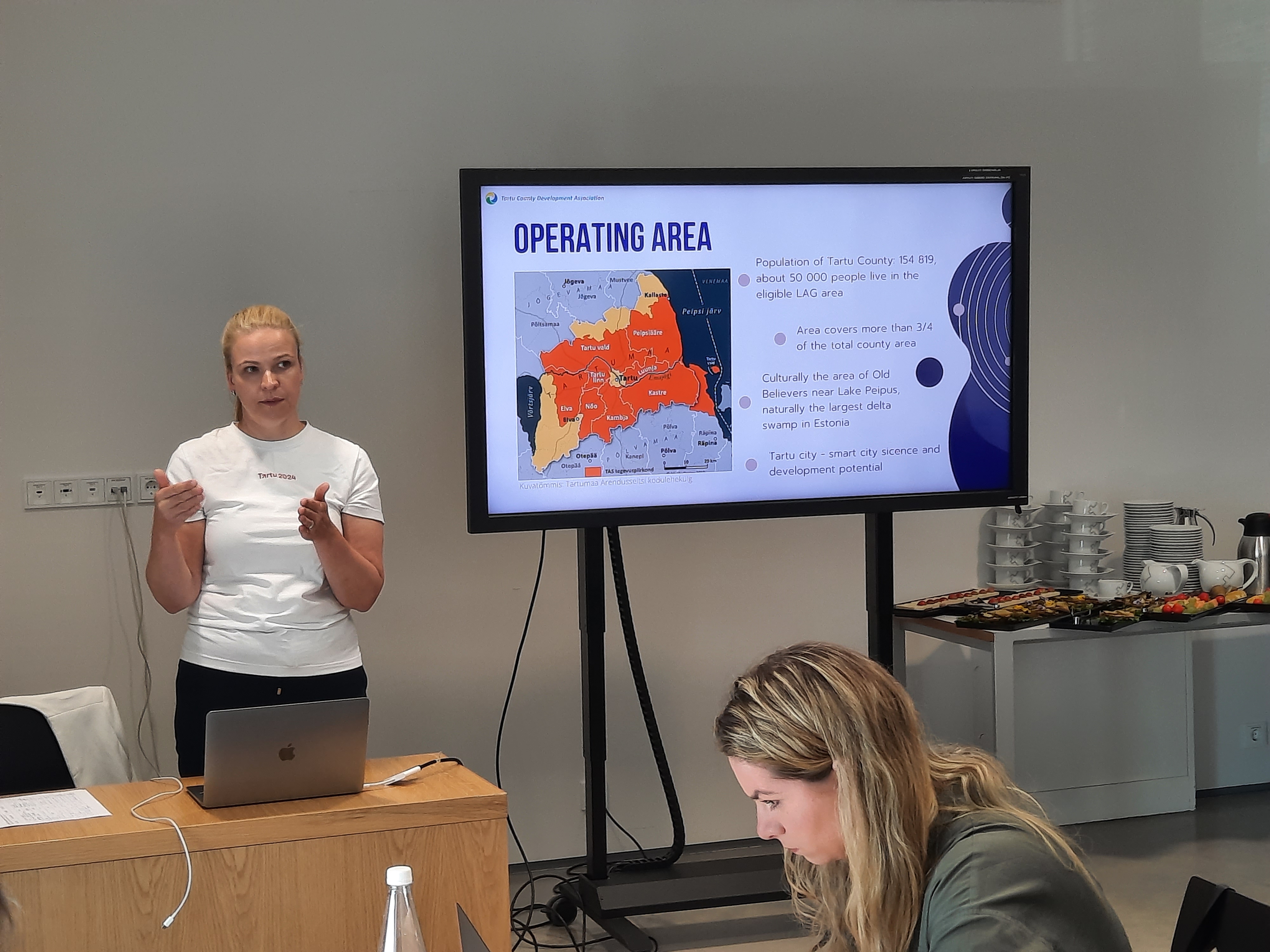 En 2025 comenzarán a trabajar con el nuevo periodo de programación para un área de más de 160.000 habitantes, de los que más de 50.000 viven en las zonas rurales. Describió a Tartu como motor científico en una comarca que cuenta con 100 kilómetros de río, el cuarto lago más grande de Europa, el Peipus, frontera natural con Rusia, en un área de casi 3.000 metros cuadrados, el 6,9% de Estonia y una densidad de población de 16,5 habitantes por kilómetro cuadrado. Un tercio del territorio son bosques, otro tercio es superficie agraria y el último humedales.