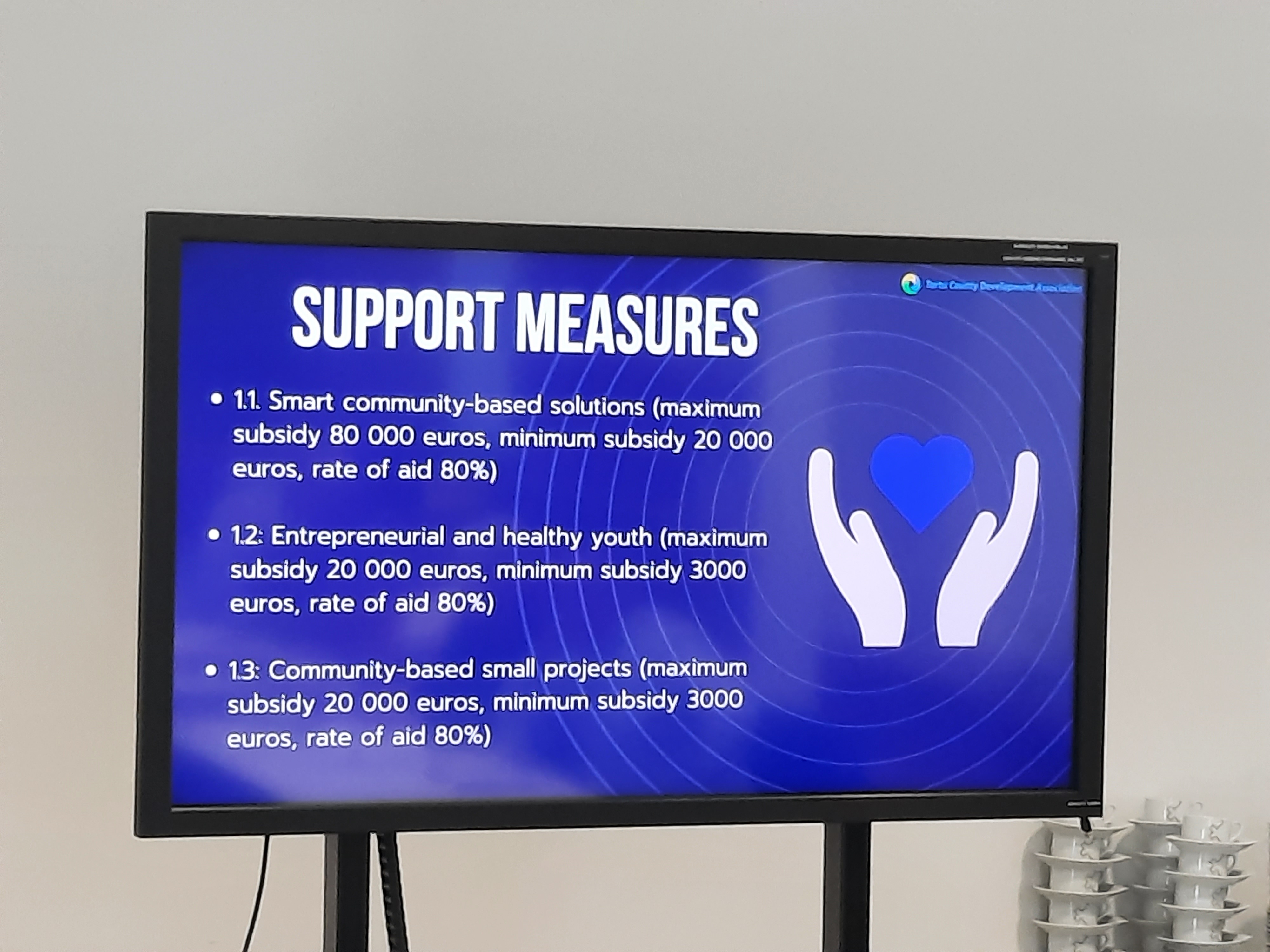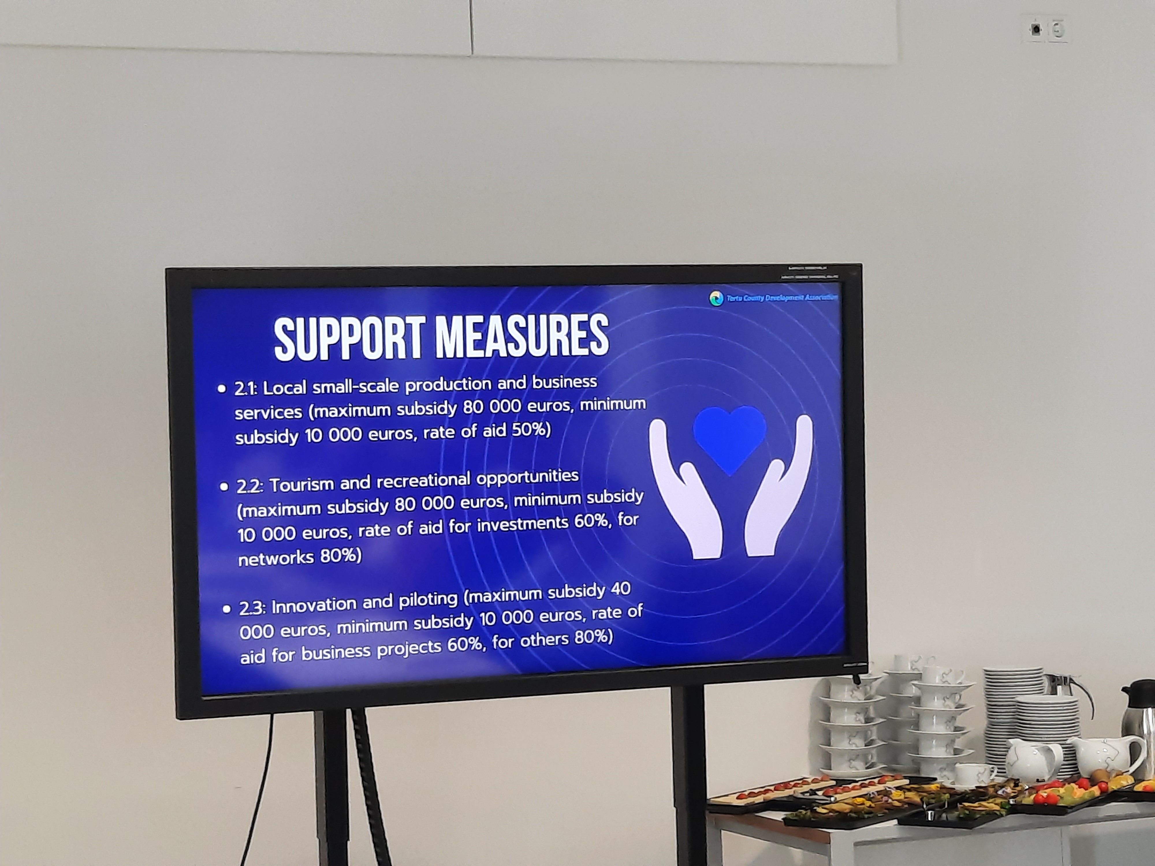 Gestionan un total de nueve medidas, tres de ellas dirigidas al desarrollo de comunidades Smart-village (con un máximo de 80.000 euros), emprendimiento, juventud, pequeños proyectos basados en la comunidad, donde el tope son los 20.000 euros. En las líneas de Smart-village, aplican muchos ayuntamientos, de modo que lo separan para evitar competencia entre medidas. Incluyen una medida nueva dirigida a la innovación, además de unas líneas más específicas dirigidas a proyectos más grandes. Resaltó de nuevo la importancia de la cofinanciación, con un máximo de 200.000 euros financiados con el LEADER. Unos proyectos grandes que, como apuntó la gerente del GAL del Condado de Tartu, dan lugar a otros más pequeños.