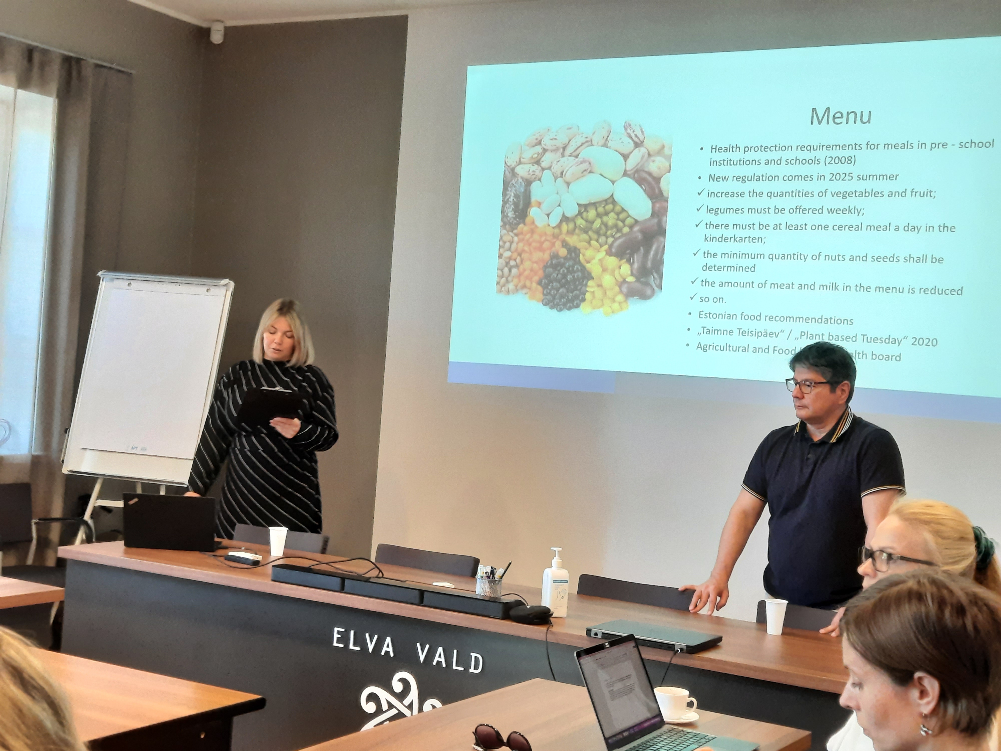 Cuentan con un programa de gestión y confirmó que para 2025 cambiarán la estrategia alimentaria. La compra anual de alimentos alcanza los 400.000 euros, que se saca a contratación pública internacional porque Estonia no produce determinado tipo de alimentos durante todo el año, y no llega a cubrir las necesidades mínimas de producción ya que, por ejemplo, en invierno no producen vegetales. Aquí explicó también la introducción de alimentos orgánicos en las escuelas, cuando es un hándicap que tiene el país, ya que no hay suficientes productores.