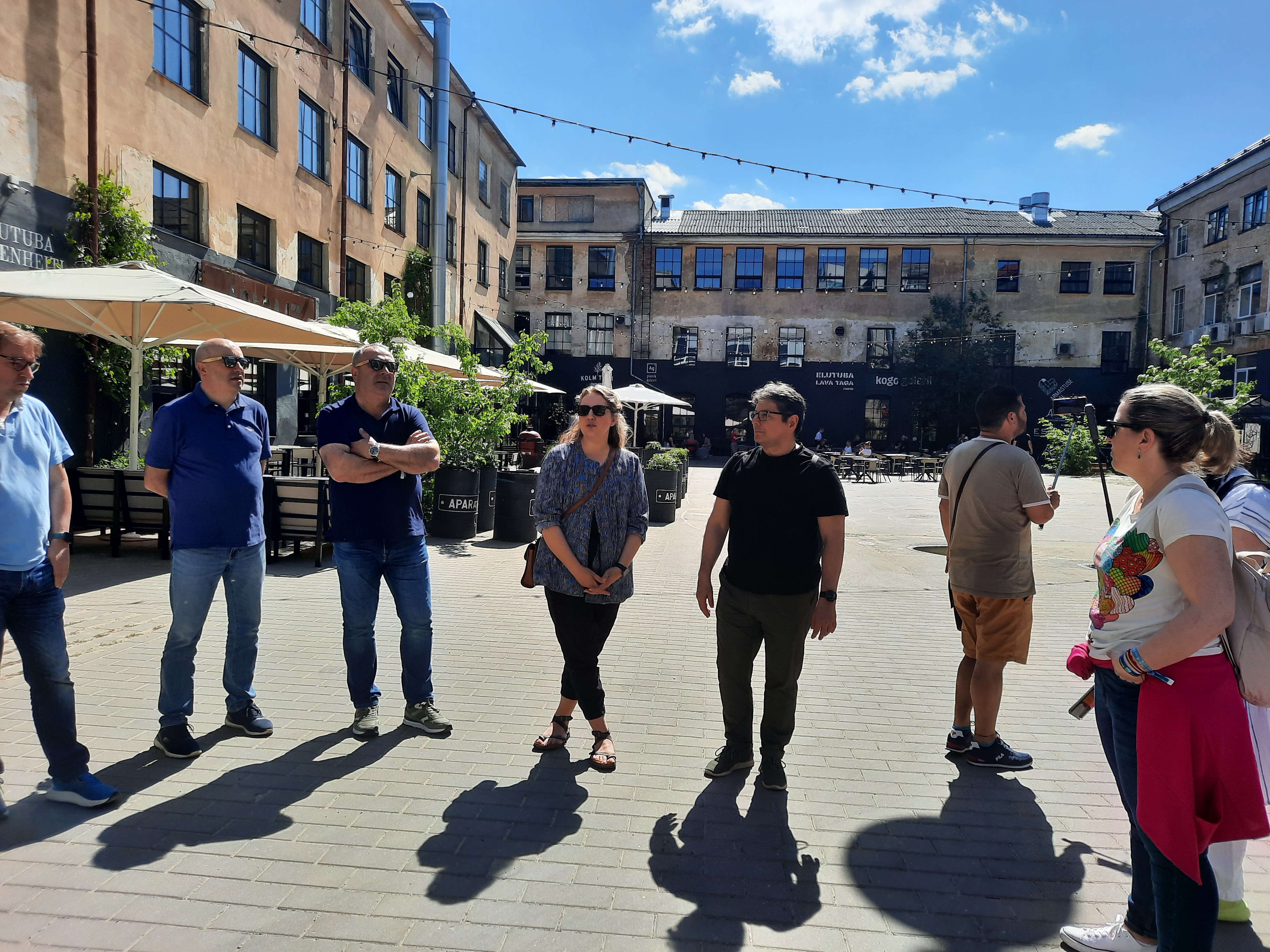 Este viaje de trabajo concluyó con la visita al Aparaaditehas, un antiguo complejo fabril soviético que fue abandonado con la caída de la URSS. Allí se fabricaban equipos de refrigeración, piezas secretas para submarinos, entre otros elementos. A mediados de los 70 trabajaban casi 1.500 personas, con su propio centro de salud, sauna y piscina, además de cantina y locales administrativos. En la actualidad se ha desarrollado como una factoría de cultura universal que combina emprendimiento creativo, estudios de artistas, diseñadores, comercios y entretenimiento. Cuenta con cuatro restaurantes, dos cafés y pastelerías. El corazón del Aparaaditehas es el atrio, un gran patio que ofrece refugio del ruido de la ciudad y numerosas actividades de ocio, según explicó Karmen Otu, gestora de eventos y plataforma cultural abierta del complejo.